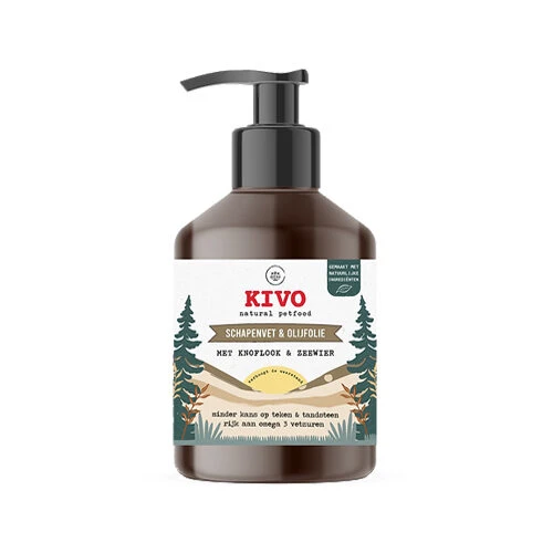 Kivo Petfood Flüssiges Schafsfett mit Knoblauch & Seetang ist ein Ergänzungsfuttermittel für Ihr Haustier mit einer Quelle von Omega 3 und 6 und reich an Vitamin A und D.