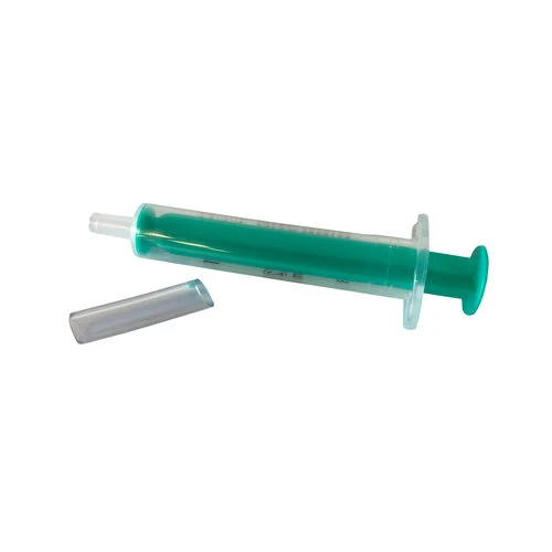 - Füllen Sie die Feindosierspritze auf 2,5 ml, indem Sie die Paste aus der Spritze herausdrücken.