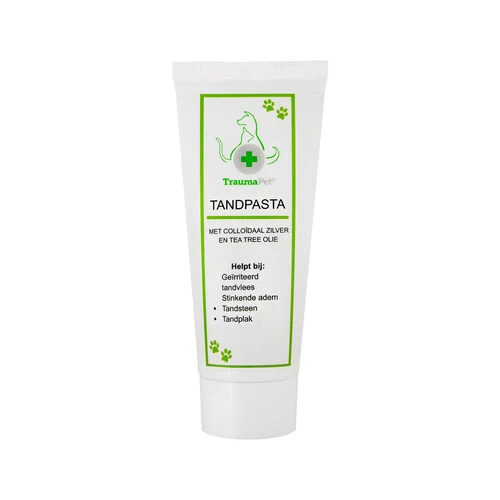 Wenn Sie die Zähne Ihres Hundes putzen, tragen Sie dazu bei, dass Zähne und Zahnfleisch gesund bleiben. Die Zahnpasta von TraumaPet ist mit einem Fleischaroma angereichert, was sie sehr schmackhaft macht. Darüber hinaus enthält es auch kolloidales Silber, das bei rotem Zahnfleisch eine natürliche Linderung bewirkt. Das liegt daran, dass kolloidales Silber von Natur aus entzündungshemmende und antibakterielle Eigenschaften hat.